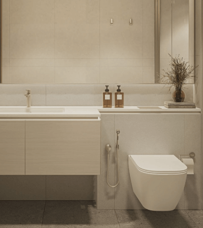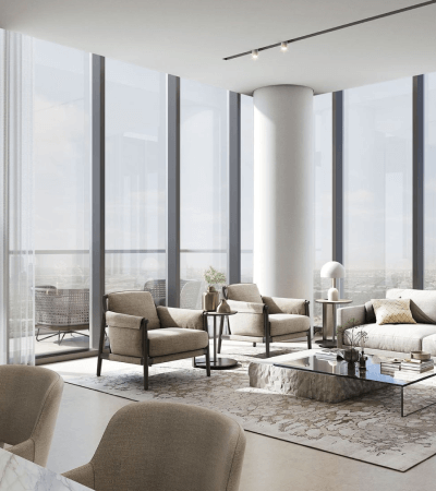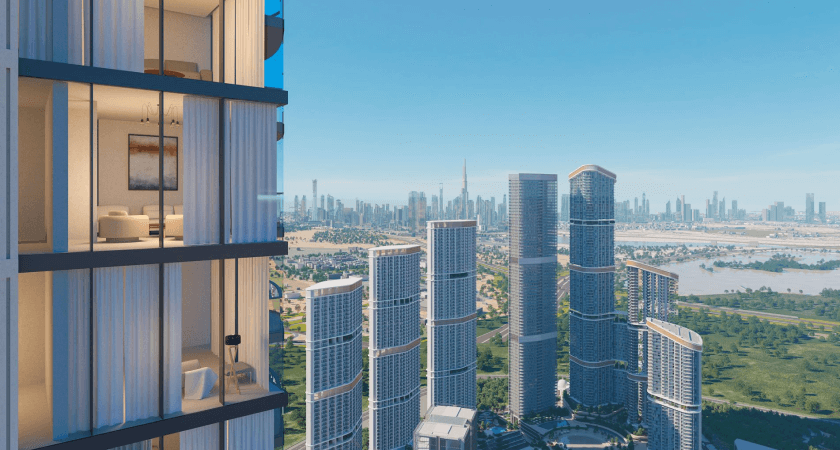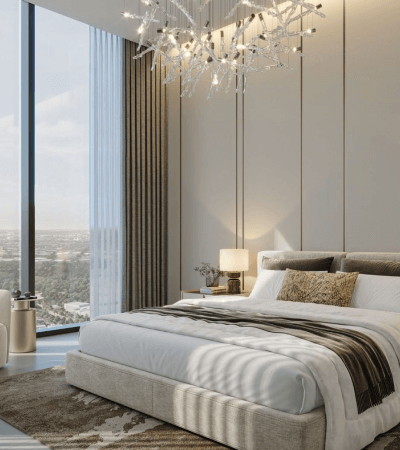Skyscape Aura is a premium residential project by Sobha Realty in Sobha Hartland 2. The 45-story tower offers 1-3 bedroom apartments, including 1.5 and 2.5 bedroom configurations.