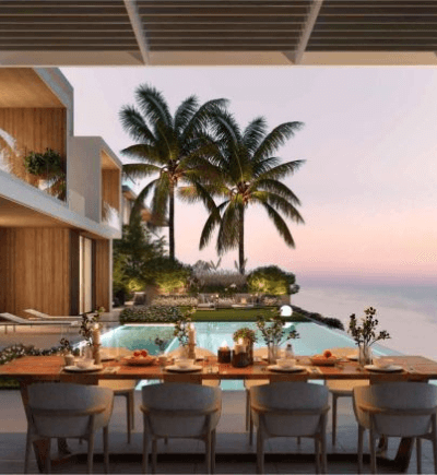 Each villa features a unique layout, design and finishing. A natural colour scheme with shades of terracotta, coral, saffron, blue, brown, beige and grey are used in the interior. Thanks to elements of natural wood, marble, and untreated stone, you will feel maximum comfort and tranquillity.